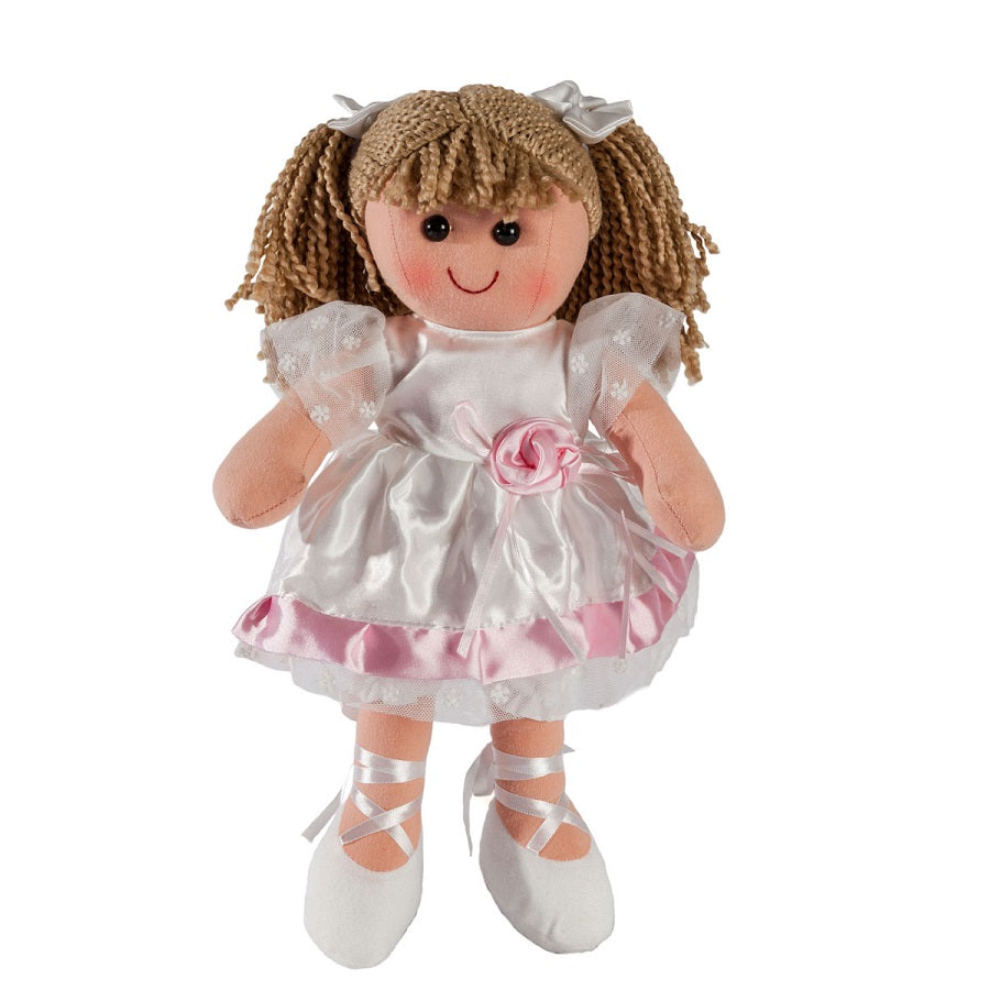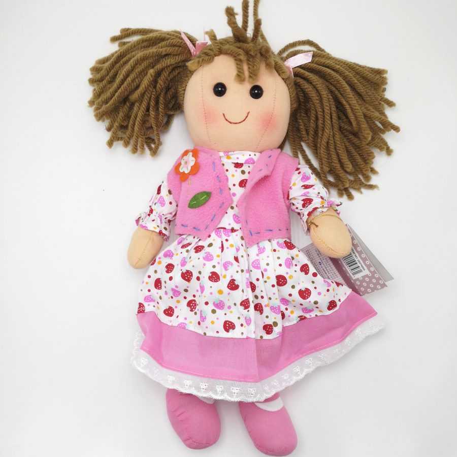 בובת בד - אנושקה שיער חום שמלת סאטן