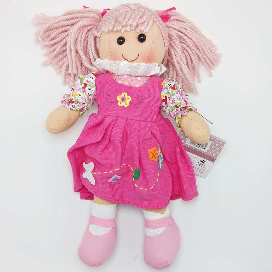 בובת בד - אנושקה שיער בהיר ושמלה פרחונית