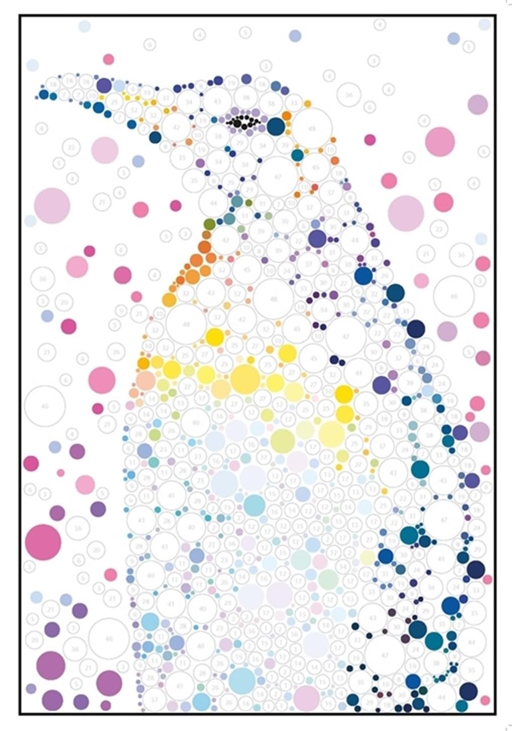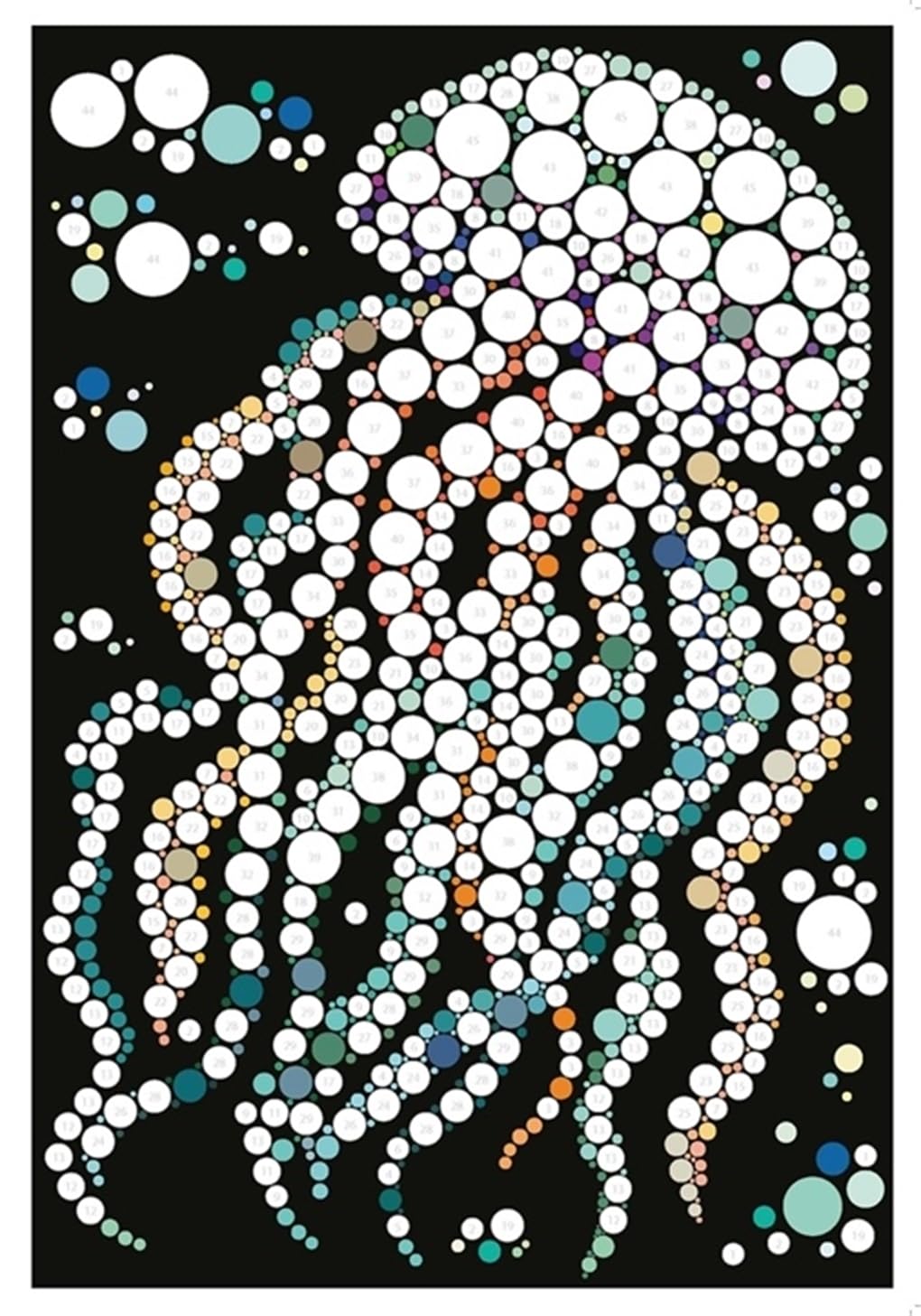 מסע מדהים באמצעות מדבקות. משתמשים בעיגולי מדבקות ממוספרים בגדלים ובצבעים שונים כדי למלא את התמונות וליצור יצירות אמנות מרהיבות. בחוברת טוקאן צבעוני, זאב מלכותי, פינגווין ועוד עיצובים רבים אחרים.