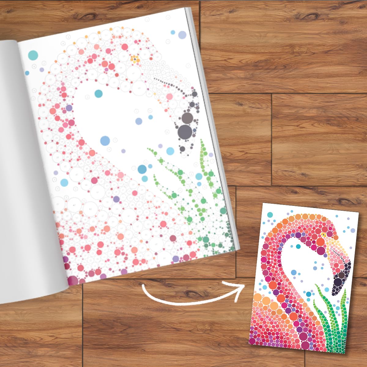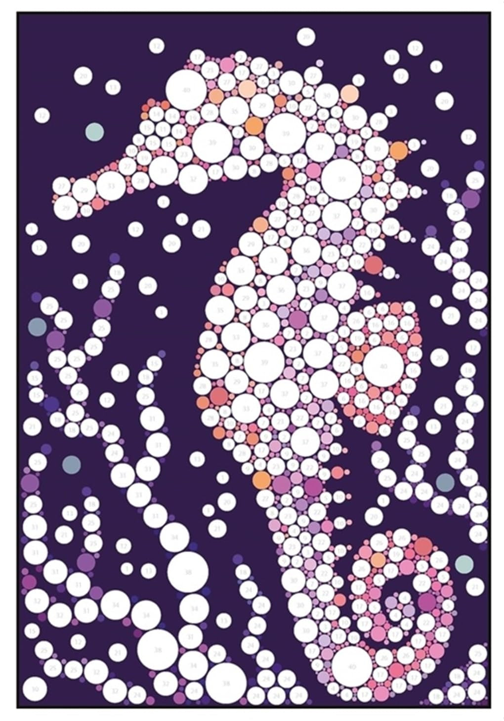 מסע מדהים באמצעות מדבקות. משתמשים בעיגולי מדבקות ממוספרים בגדלים ובצבעים שונים כדי למלא את התמונות וליצור יצירות אמנות מרהיבות. בחוברת פרפרים, פרחים, כוכבי ים ועוד עיצובים רבים אחרים.