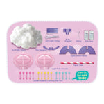 הערכה כוללת את כל מה שצריך ליצירת מנורה. חומרי יצירה לקבלת ענן רך ואוורירי באמצעות צמר סינטטי, בסיס תאורה עם נורות לד בטיחותיות וכלים נוספים.