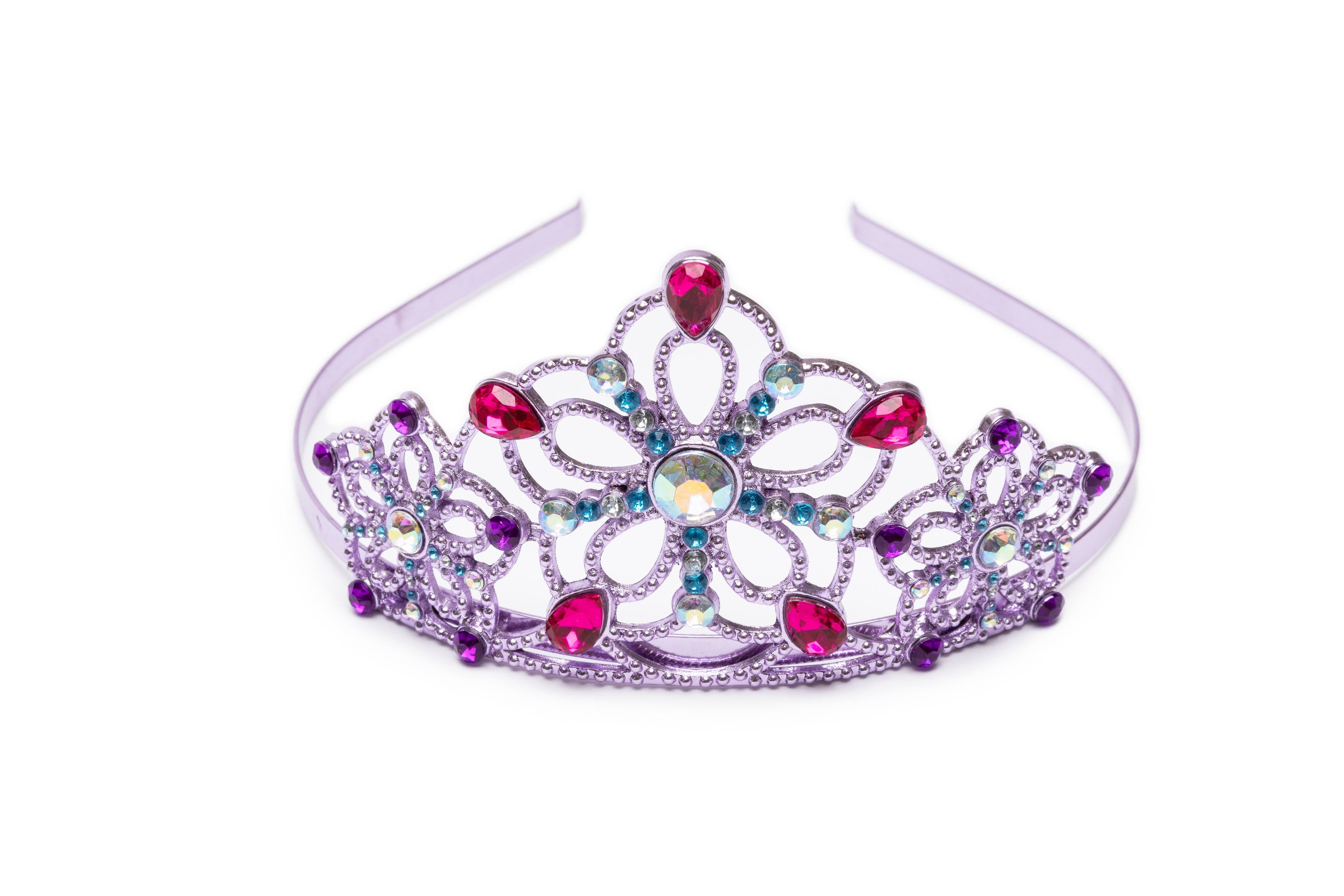 כתר נסיכותי בצבע סגול לילך, בשילוב אבנים מנצנצות בצבעי לילך, ורוד ותכלת..