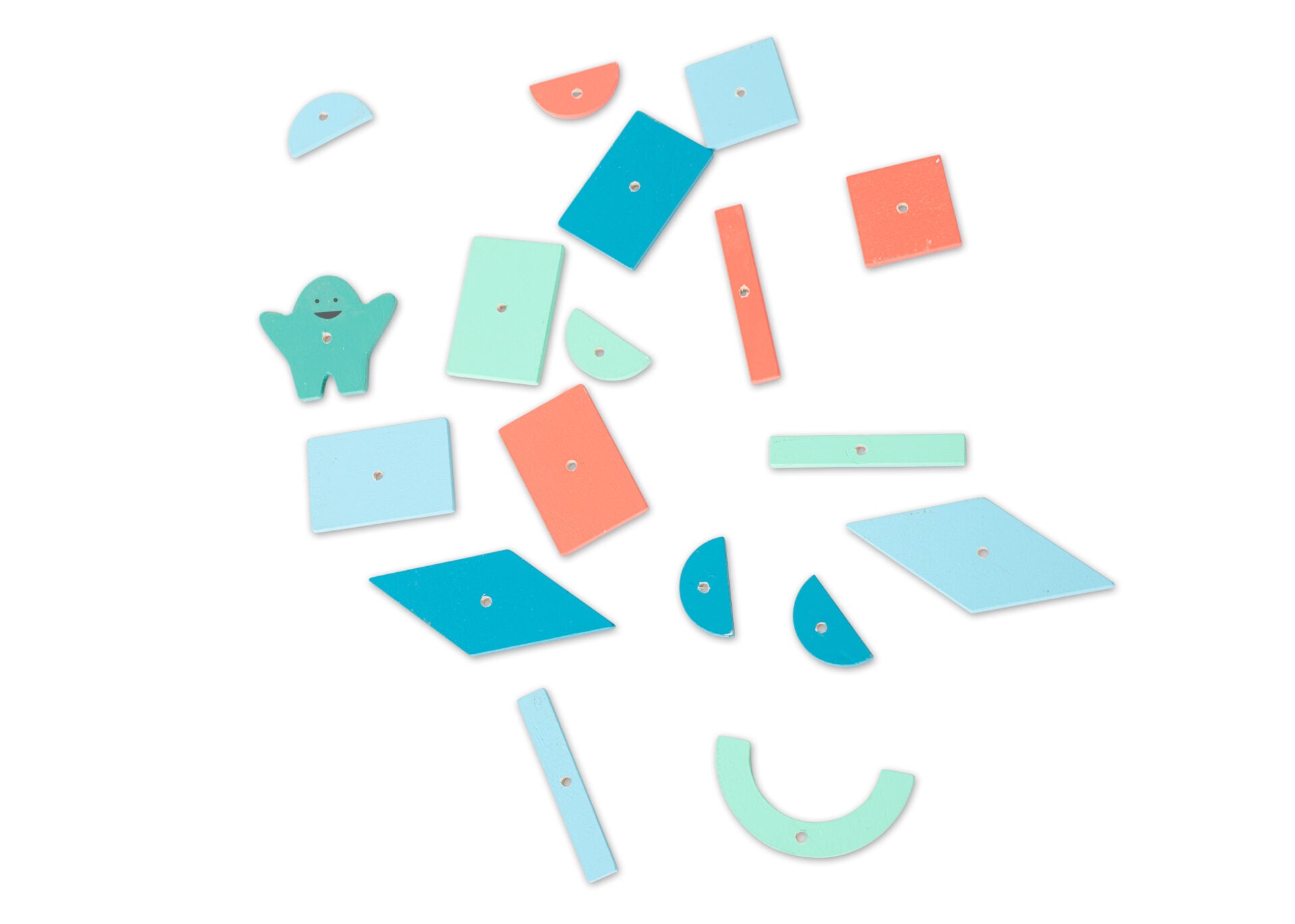 33 צורות הנדסיות שונות ו 10 כרטיסיות דגמים שונים ומיוחדים, יחד על גבי הלוח בכל פעם יוצרים דגם אחר.