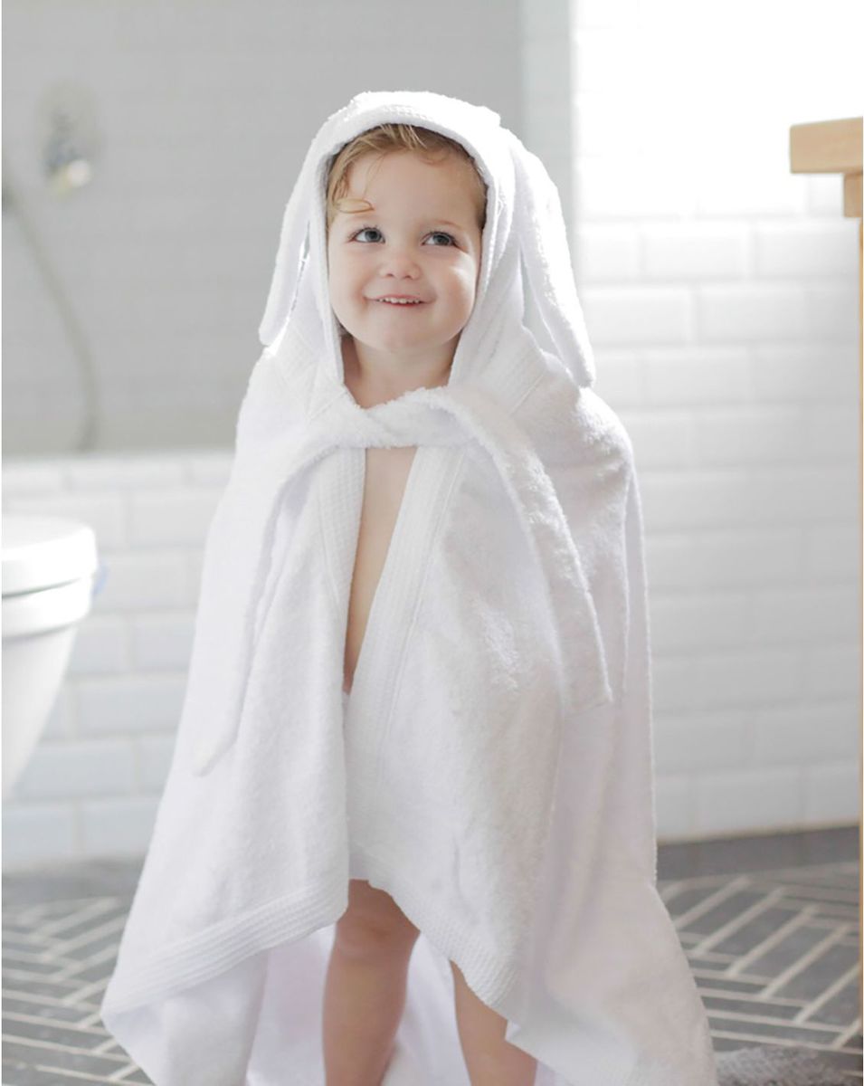מגבת חיבוקי עם כובע - לבן