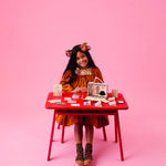 מארז מקסים בצורת מזוודה קטנה מקרטון קשיח עם ידית, בפנים יש את כל מוצרי הנייר הכי מקסימים שצריך. מחברת, בלוק כתיבה, 4 כרטיסי ברכה, 4 מעטפות, 4 דפי מדבקות ועט ג'לי.