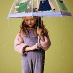 מטריה שקופה עם איורים מקסימים של חיות מתוקות חלקן עם כלי נגינה של חברת Djeco הצרפתית. עשוייה פלסטיק חצי שקוף ומספקת הגנה מלאה מהגשם, למטריה מנגנון פתיחה ידני עם אמצעי בטיחות שנועד למנוע התפסות של אצבעות הילדים.