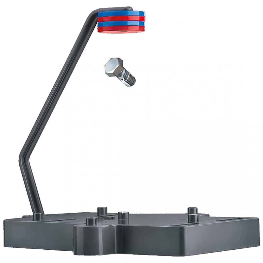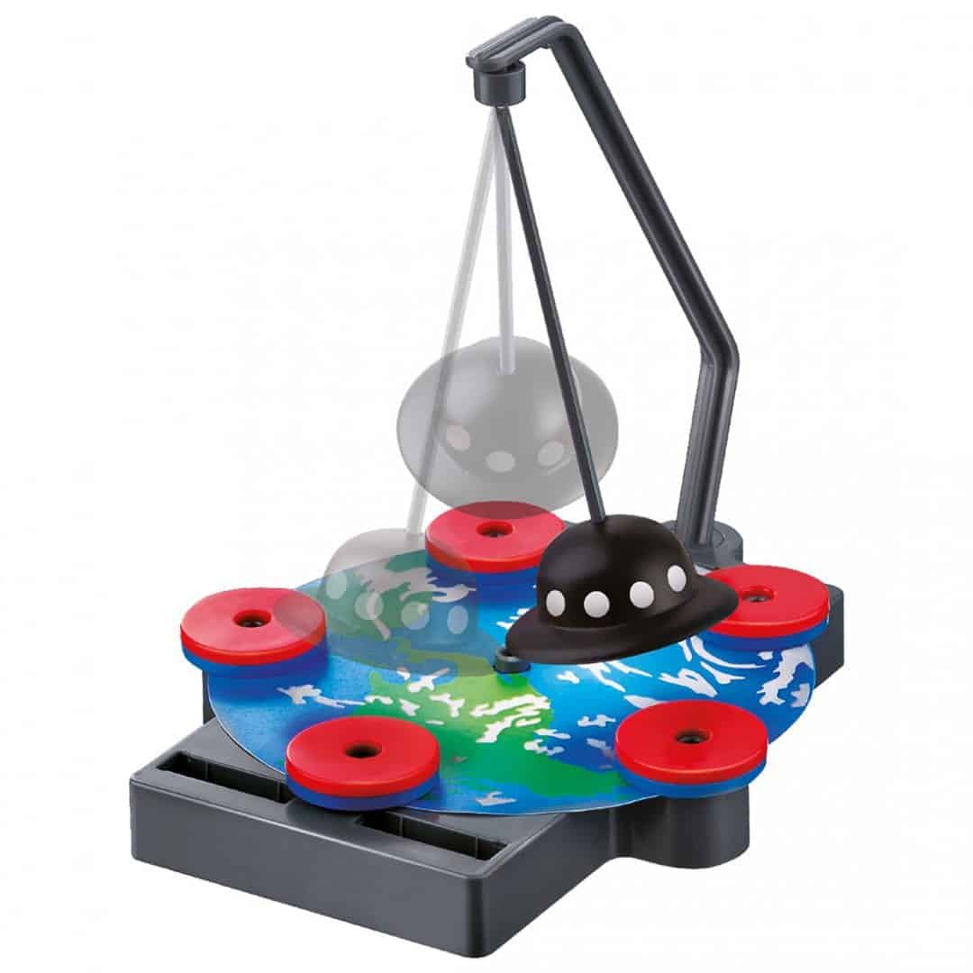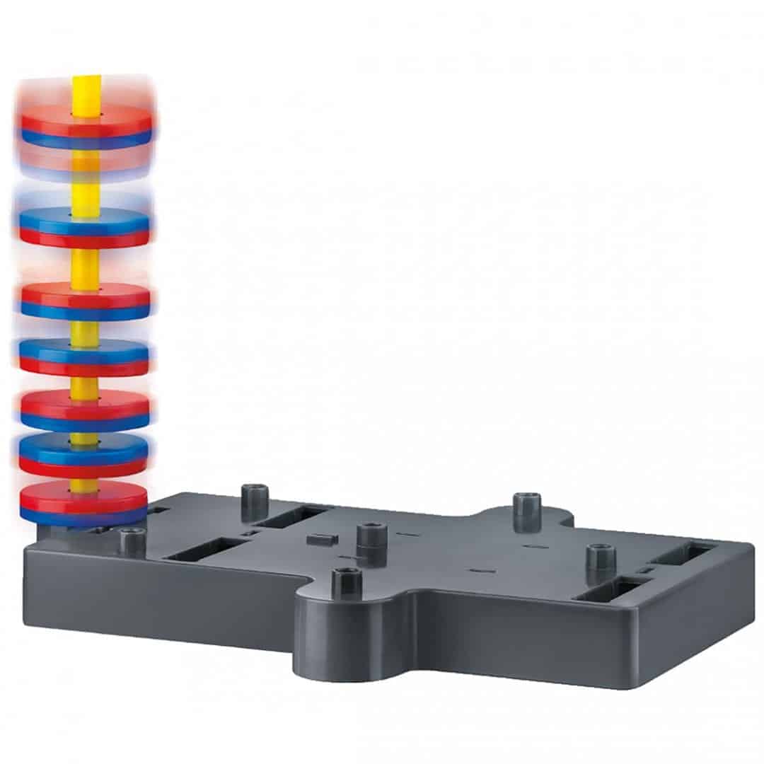 ערכת ריחוף מגנטי מכילה: גוף עב”ם, חוט, תצריף חוט, ציר, 10 אומים, מחיצה, אגן מדידת משקל, זרוע תמיכה, מדבקה, דסקית נחושת, סמן, מוט דק עם טבעת. תבנית מאוירת (מצפן, כדור הארץ, איש חלל), תיבה מגודרת, 7 מגנטי טבעת, מוט מעוגל, מוט מחומש, לוח בסיס והוראות מפורטות. (נייר דבק דרוש אך לא כלול)