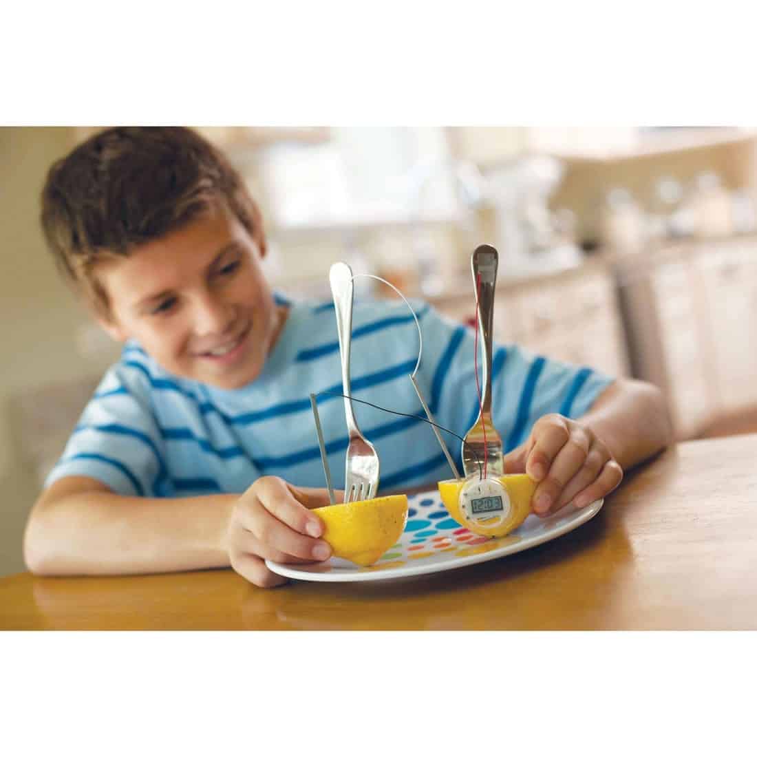 בערכה המקסימה הזאת כלול לוח נחושת, לוח אבץ, שעון LCD, חוט והוראות.