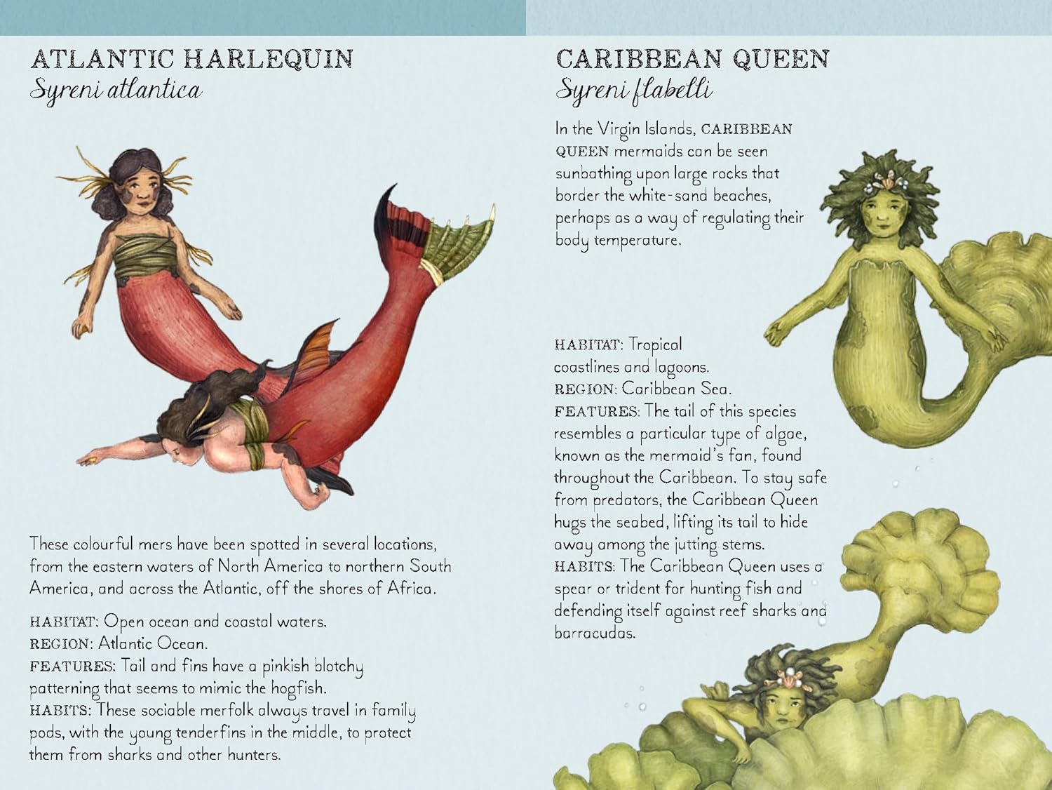 האיורים כולם של מיני בתולות ים מאזורים שונים בעולם, החל מהמלכה הקריבית ועד לטיילת הדרומית. המשחק הוא להתאים זוגות השייכים לאותו סוג.
