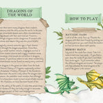 החוברת, בנוסף להסבר כיצד לשחק את המשחק, משמשת כמדריך למיני הדרקונים שבקלפים. למדו כיצד דרקון הבומבוס הצמחוני משתמש ברגליו הקדמיות החזקות כדי לחפור את מאורתו במדרונות הגבעות, ועוד.