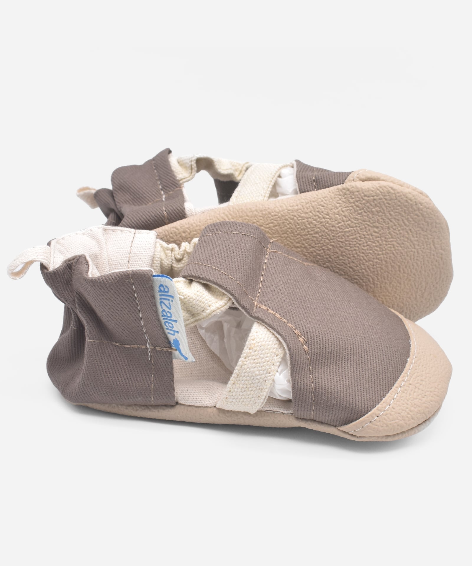 הסנדלים של עליזה'לה בעלי ביטנה מכותנה דקה ונושמת, ונתפרים עם סוליה רכה ואיכותית. הסוליה הרכה מומלצת להתפתחות תקינה של שרירי כף הרגל אצל תינוקות, תוך כדי שמירה על כף הרגל נעימה ומוגנת. סוליה מונעת החלקה, על מנת לתת לילדכן את מלוא התמיכה. הנעליים נשארות היטב על כף הרגל ולא נופלות.