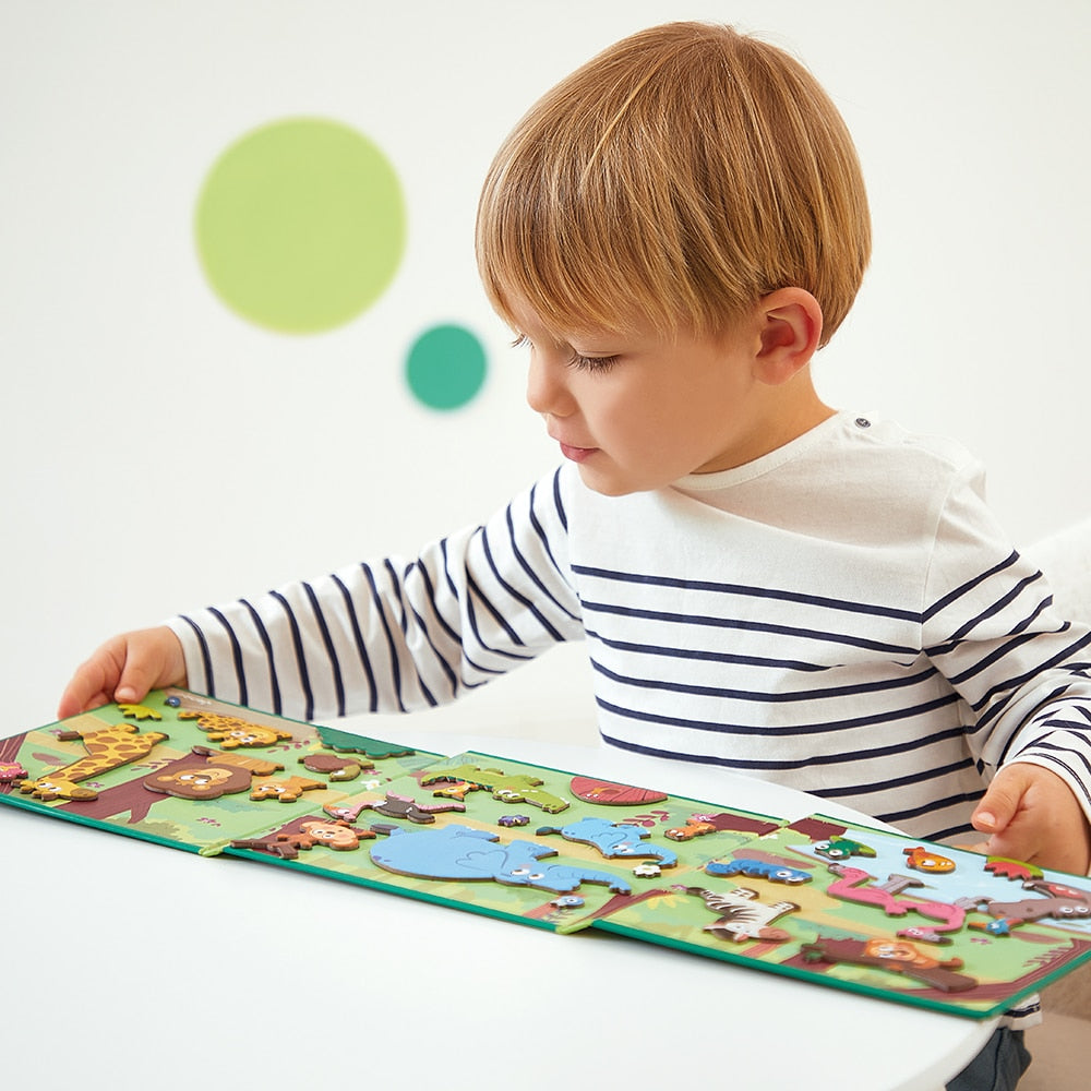 משחק מגנטי בנושא חיות בספארי. המשחק כולל לוח רקע צבעוני עם איורים מעולם החיות, ו 30 מגנטים למשחק. הילדים יכולים למקם את המגנטים בסצינה על גבי הלוח הנפתח, או לשחק משחק חופשי, לתפוס את הנחש או לרדוף אחרי הפרפרים.
