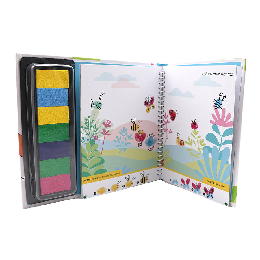 ספר פעילות המשלב צביעה עם צבעי אצבעות .