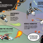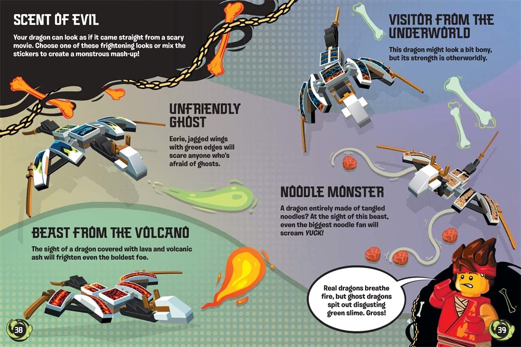 מצורפות הוראות לבניית דרקון רשע, מכונית דרקון ועוד. כשמסיימים, ניתן לקשט באמצעות המדבקות המצורפות. קיימת אפשרות ליותר מ 10 אפשרויות לבנייה מחדש, כך שתמיד ניתן לעצב את הדרקונים מחדש.