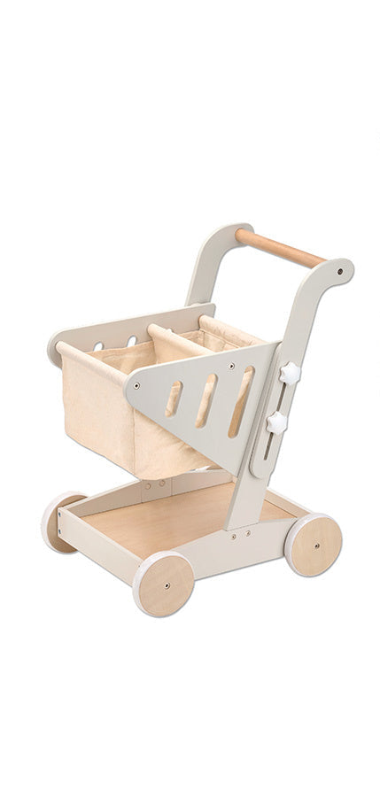 עגלת הקניות מגיעה עם סל כותנה בעל שני תאים , לסידור נח וקל של המצרכים בעגלה, ידית נוחה שמתכווננת לגובה המתאים. משטח בסיס להניח חפצים נוספים, וארבעה גלגלי עץ.
