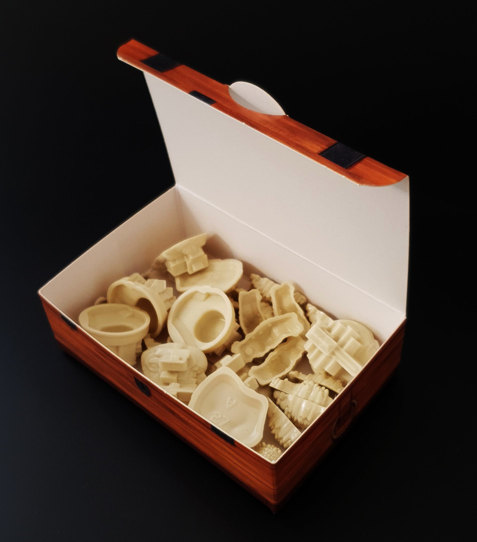המשחק מכיל: כרטיסיות, קלפים, כלי משחק, קוביות, חוברות הוראות ומילון מונחים.