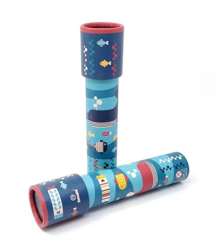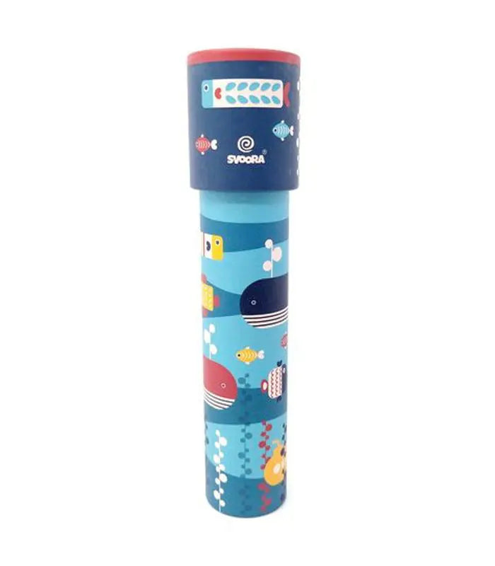 קליידוסקופ מרהיב שיגלה לכם עולם של אשליות אופטיות מרתקות. צורתו גליל בהדפס צבעוני של דגים באוקיינוס.