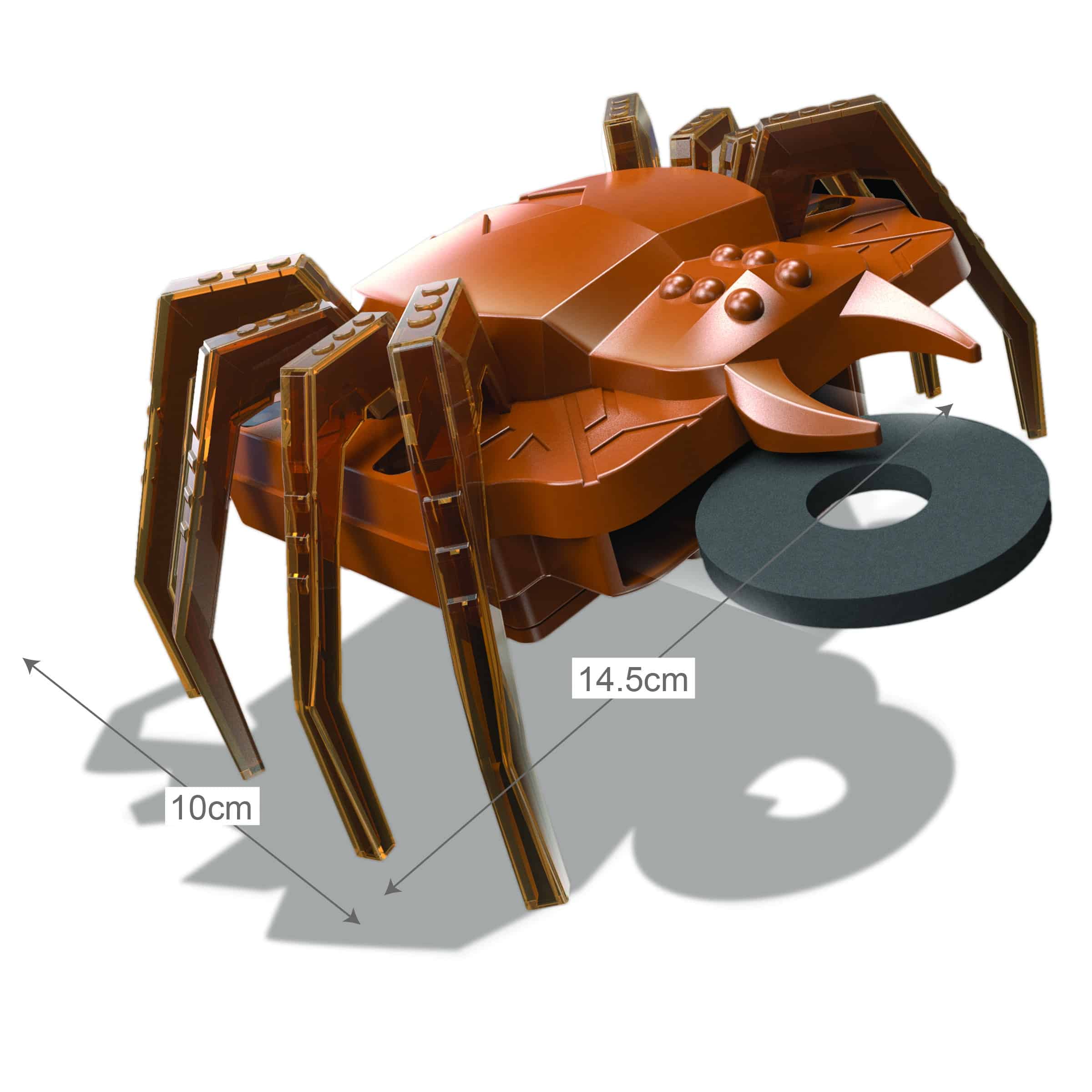 הרובוט משגר דיסקים עם מטרות חרקים. ילדים יכולי לתרגל את הכיון תוך כדי שהם מדמיינים עצמם עכבישים בדרך לשלוח קורים ללכידת טרף.