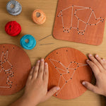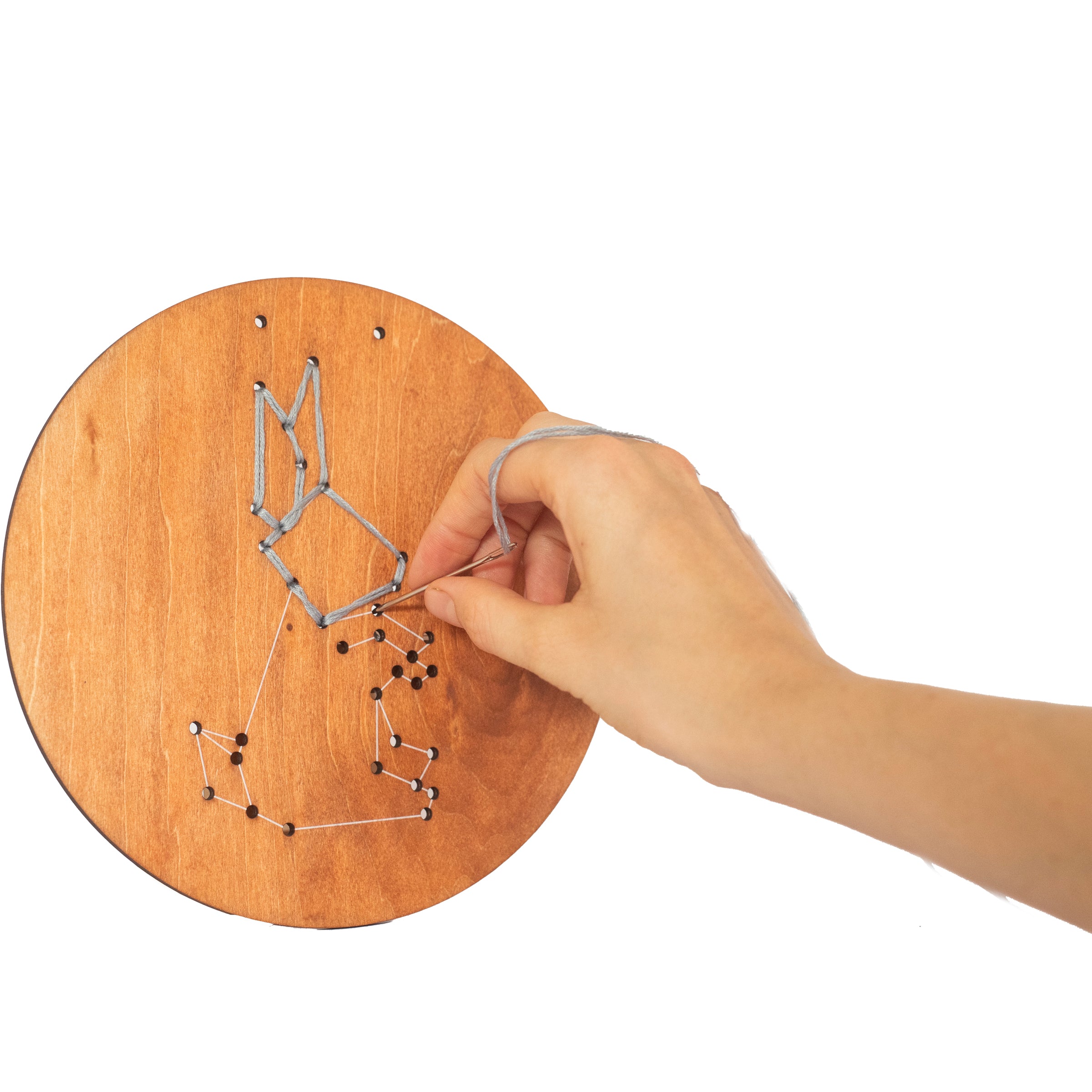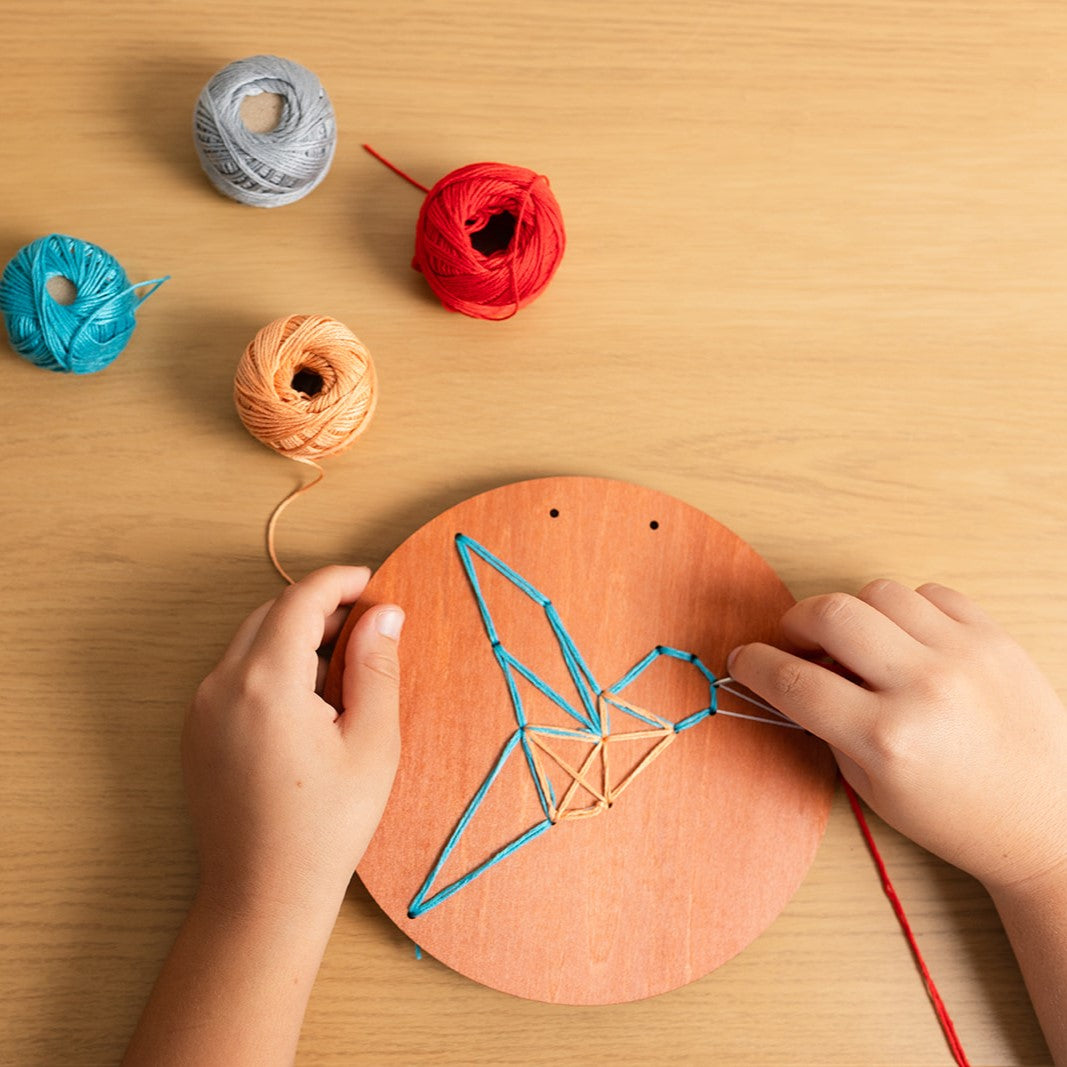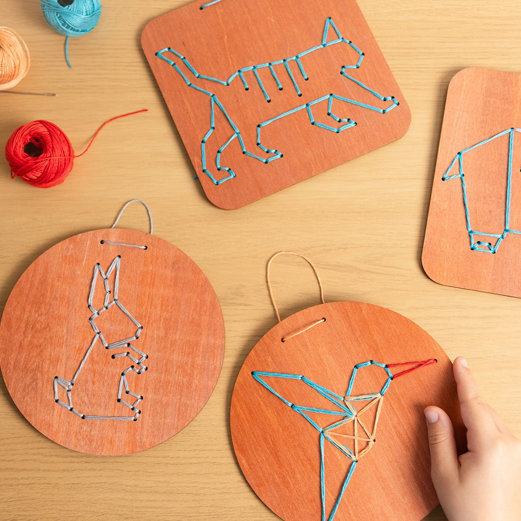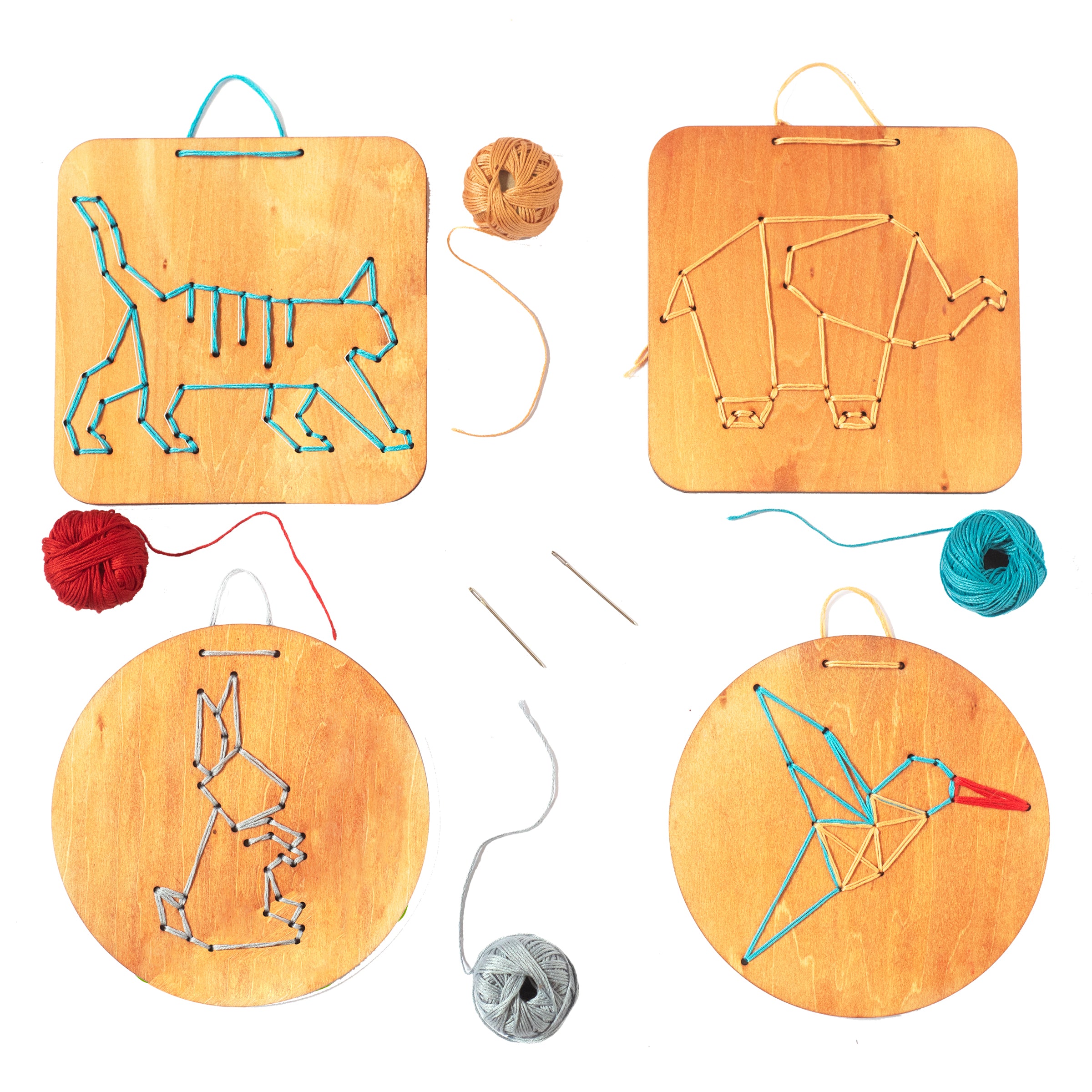 בערכה 4 דיסקים מעץ 2 עגולים, 2 מרובעים עם קווים מנחים בצבע לבן, וחורים, 2 מחטים שהן בטיחותיות לשימוש של ילדים, ו - 4 סלילי חוט ריקמה בצבעים שונים. על כל דיסק מעץ משורטטת חיה אחרת אחר - ציפור, ארנב, פיל וחתול, כך שזה יכול להתאים ליותר ממשתתף אחד. משך היצירה של כל פרוייקט הוא עד חצי שעה.