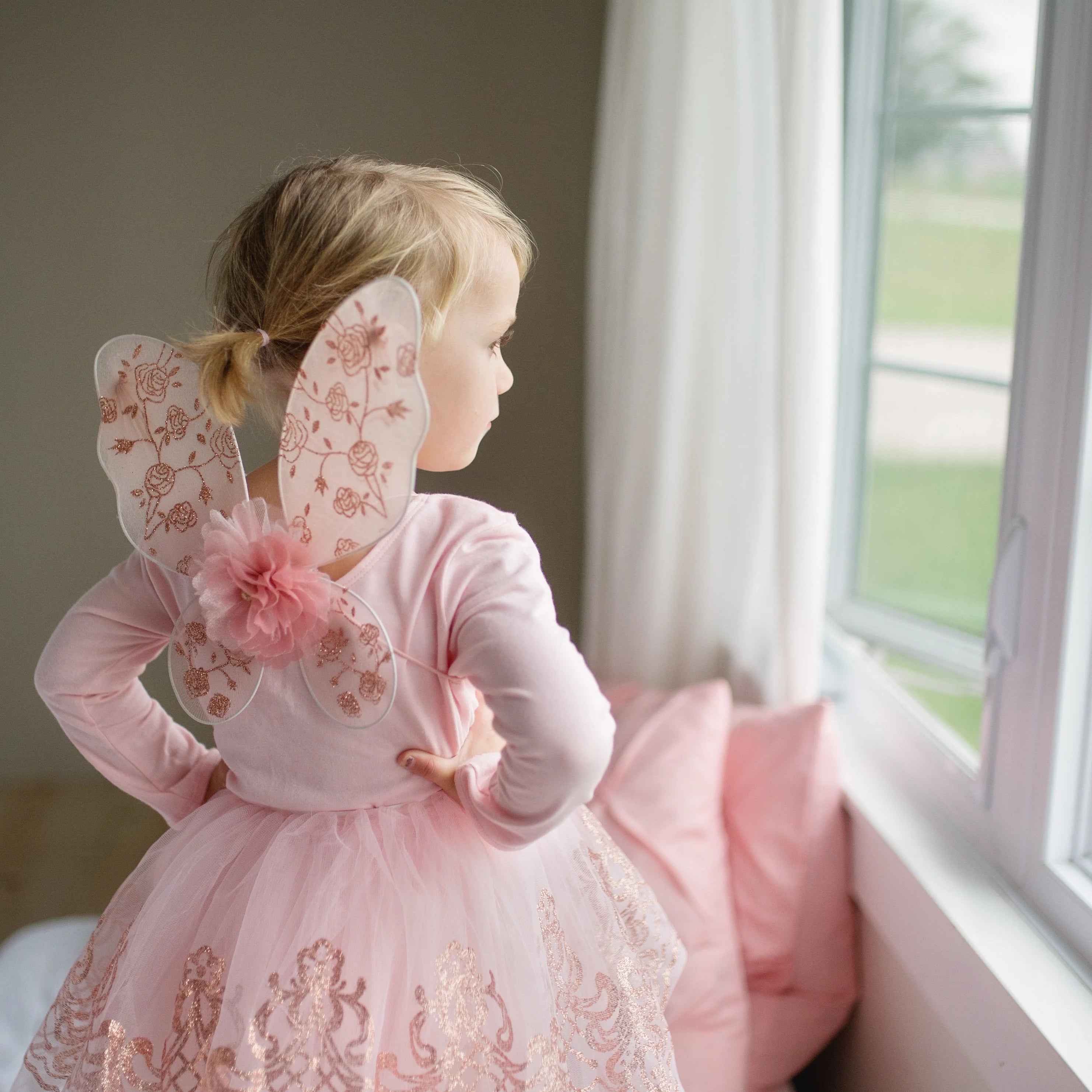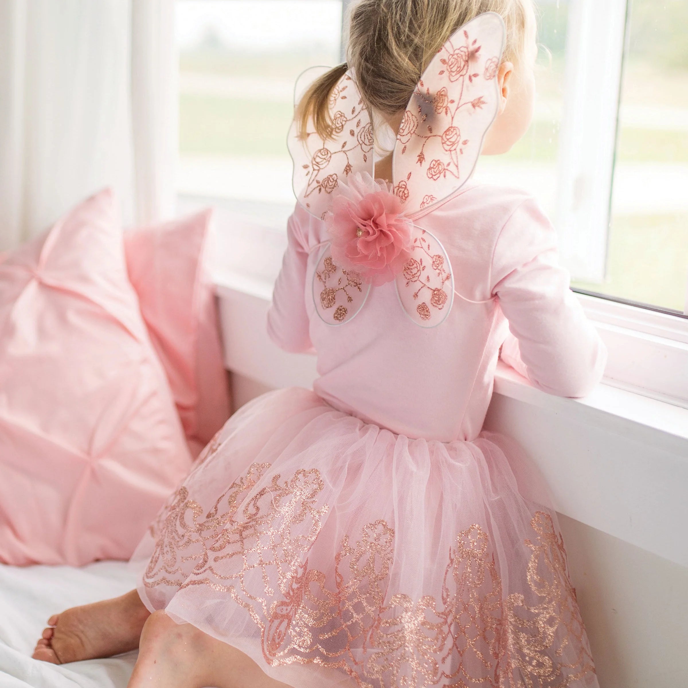 תחפושת - כנפיים וחצאית ורוד זהב לפרפר