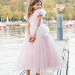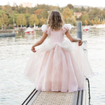שמלה זו עטופה בטפטה ורודה בהירה רכה ומנצנצת, השרוולים המכוסים מוסיפים נופך של קסם מלכותי, ומספקים בדיוק את הכמות הנכונה של תחכום עבור הנסיכה הקטנה שלך. הרפרוף העדין של השרוולים מאפשר לילדתך להרגיש כמו בארמון המלוכה מכף רגל ועד ראש.