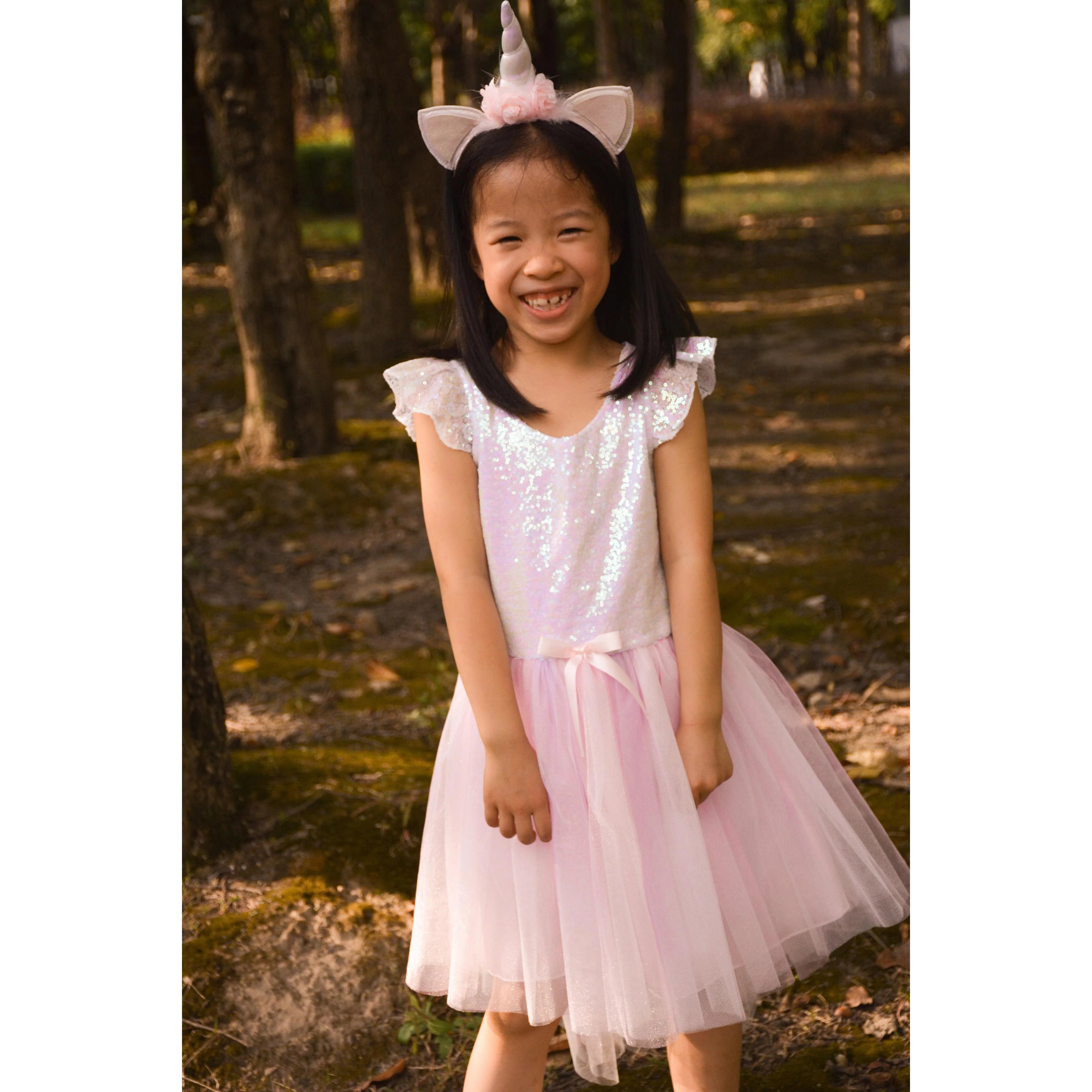 בחירת שמלה שהיא גם אופנתית וגם יכולה להיות עבור הנסיכה הקטנה שלך. שמלת חד קרן שלנו עם טול ורוד רך מתכנס לחצאית מלאה ופוגש חלק עליון מצנץ ומבריק מדהים עם הדגשות שרוולי טול. בשילוב קשת חד קרן לשיער