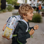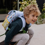 מגיע בשני גדלים: תיק גן גודל 2-5 שנים: אידיאלי לתינוקייה ולגן. תיק בית ספר גודל +6 שנים: אידיאלי לבית ספר יסודי. מתאים למחברות ותיקיות A4.